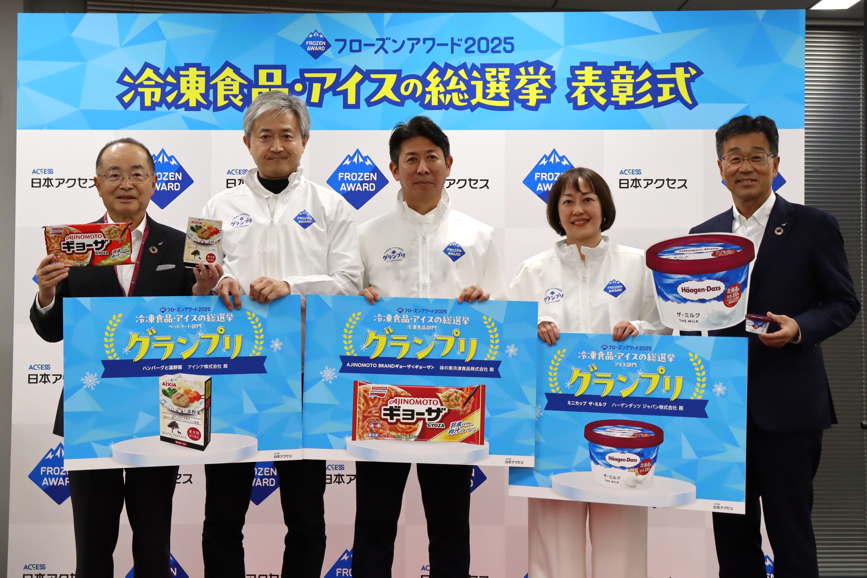 株式会社日本アクセスは、2025年10月1日から11月30日まで開催した「フローズンアワード2025」において、冷凍食品・アイス・ペットフードの各部門でグランプリ商品を決定いたしました。今回の投票総数は過去最高の約407万票を記録し、結果発表および表彰式を12月11日に開催しました。