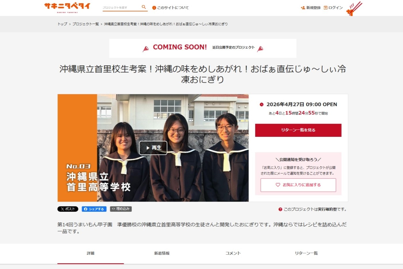 「サキニタベタイ」オープンに合わせて、第一弾として、高校生がレシピを考案した冷凍おにぎり3種を掲載します。若い世代ならではの発想をもとに開発された商品を、ぜひお試しください。