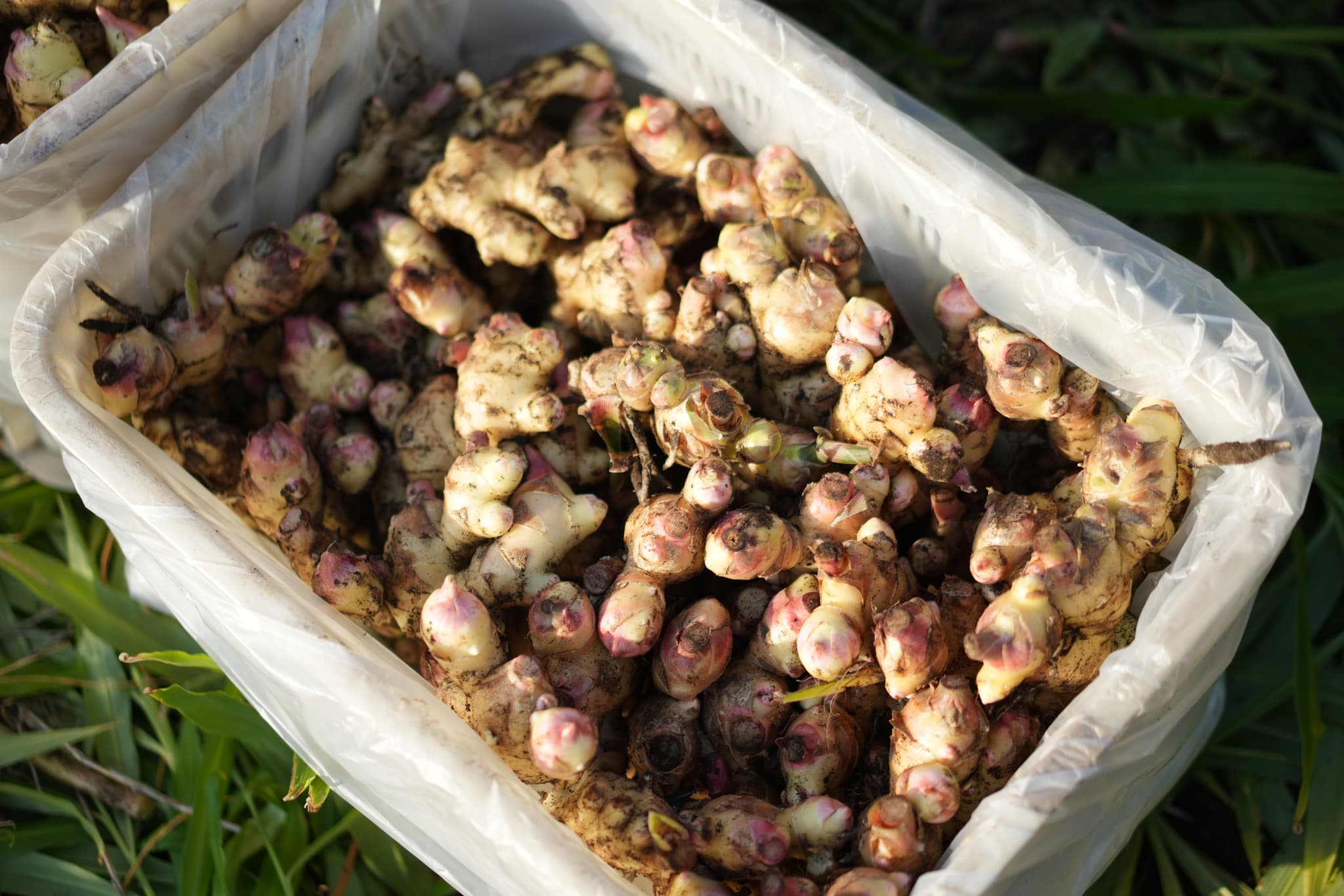 江戸時代から続く生姜農家「薬味屋人作」。島原の土壌は火山灰を多く含む黒墨土で、水はけが良くミネラルも豊富。さらに名水百選に選ばれた島原湧水を使い、丁寧に育てられた生姜は、繊維質が少なくみずみずしいマイルドな味わいが特長です。当社は販売拡大に向けた支援を行っています。